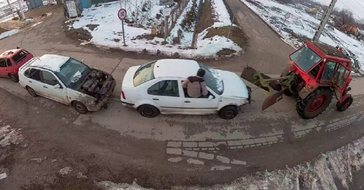 A Tiszakécskei Rendőrőrs munkatársai egy fényképet is kaptak, amelyen egy belarusz traktor látható, amint három személyautót vontat maga mögött, mindössze spaniferrel és lánccal összekötve. A rendőrök az adatgyűjtés során eljutottak ahhoz az ingatlanhoz, amelynek udvarán megtalálták a járműveket.