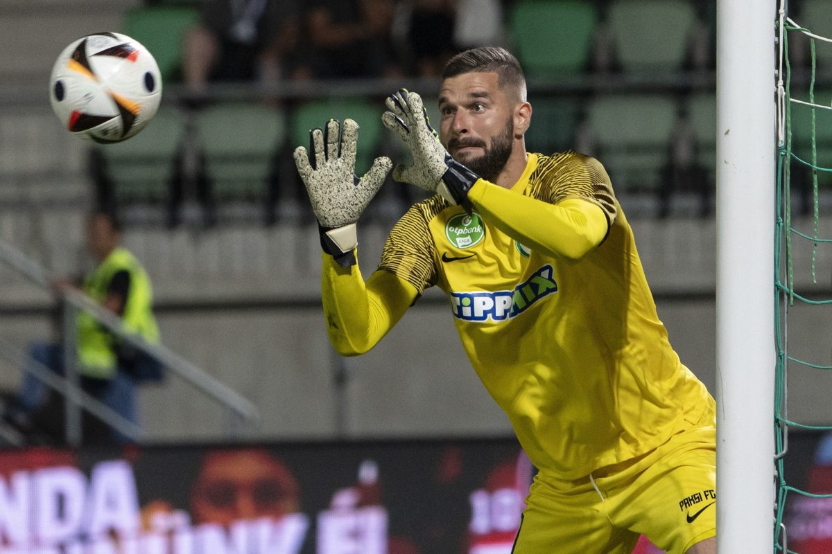 Fotó: Szappanos Péter, a Paksi FC kapusa a labdarúgó Konferencia Liga selejtezõjének 2. fordulójában játszott Paksi FC - AEK Larnaca mérkõzésen a Paksi FC Stadionban 2024. július 25-én. MTI/Szigetváry Zsolt